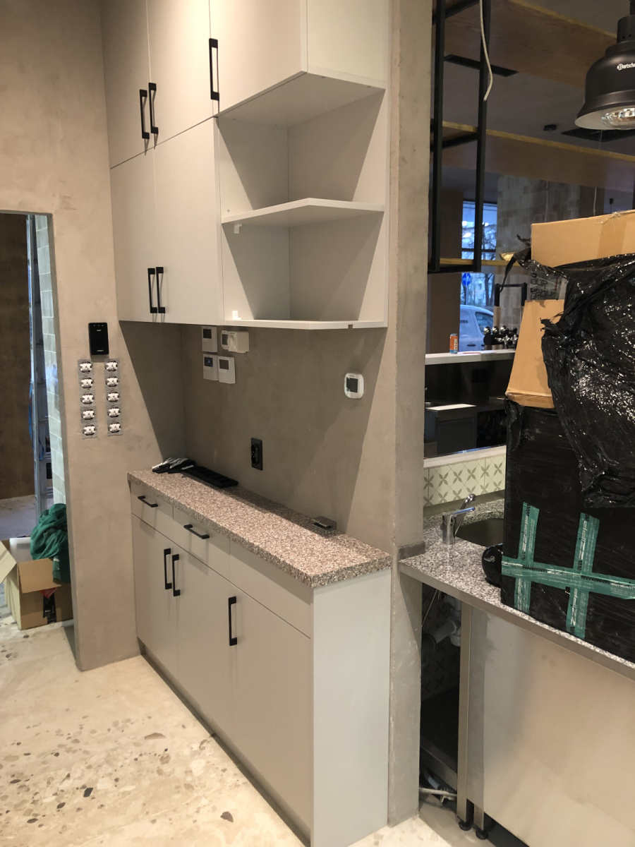 Nasze realizacje zawsze łączą design dopasowany do stylu wnętrza z funkcjonalnością, która ułatwia codzienną pracę. W projektach dbamy o detale – zabezpieczenia krawędzi, ergonomiczne uchwyty, systemy cichego domykania oraz materiały odporne na intensywną eksploatację. Dzięki temu każdy pomocnik i każda recepcja są trwałe, wygodne w użytkowaniu i spójne z estetyką lokalu.